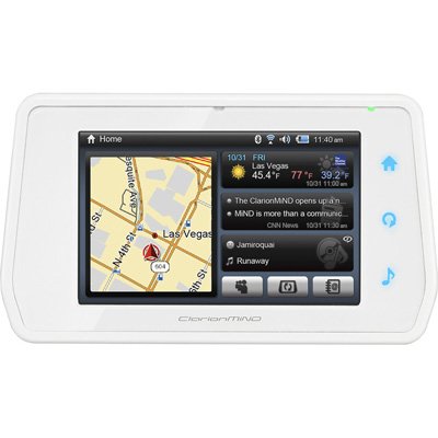 ClarionMiND is a completely new type of mobile Internet device created by the car audio and navigation expert Clarion. As a Next Generation Navigation plus Internet-Based Entertainment device, it provides GPS navigation, and with Wi-Fi and Bluetooth-enabled cellphone, the Internet can be accessed via a full browser anytime and anywhere. ClarionMiND has a new interface that allows you to navigate the real-world and the unlimited possibilities of the Internet at the touch of a finger. Standard Features: Available in Black, White and Red; 4.8-inch TFT WVGA Touch Screen; Built-In Navigation; Built-In WiFi; Stylus and Quick Reference Guide; Li-Ion Rechargeable Battery; Cigarette lighter and AC Adapter; Windshield Mount Kit. Hardware: Intel Atom Processor Architecture; 4.8 inch WVGA(800x480) Widescreen LCD Display with touch screen; Simple Three Buttons (Home, Control,Audio); Built in stylus holder; Headphone Jack; Built-In Speaker / Amplifier; Inter-changeable Li-Ion Battery and extended battery is available as an option. Storage: 512MB DRAM; 800MHz Clock Speed; 4GB Solid-State memory for Storage. I/O: MicroSD Card Slot; 2 USB Port (Standard 2.0/Mini); Built-In WiFi b/g; Built-In Bluetooth 2.0 EDR for Dial-up Networking (phone tethering) uses phone as a modem; Built-In SiRF GPS III 20-Channel GPS Antenna/Reciever; USB media control to external MP3 thru RealPlayer; Docking Station Connector for optional NK1. Dimensions: 6.61in(W) x 3.78in (H) x 1.06in (D) with Standard Battery; 6.61in(W) x 3.78in (H) x 1.42in (D) with Large battery (Option); Total Weight : With Standard Battery: 11.64oz With Large Battery: 13.76oz (Option.