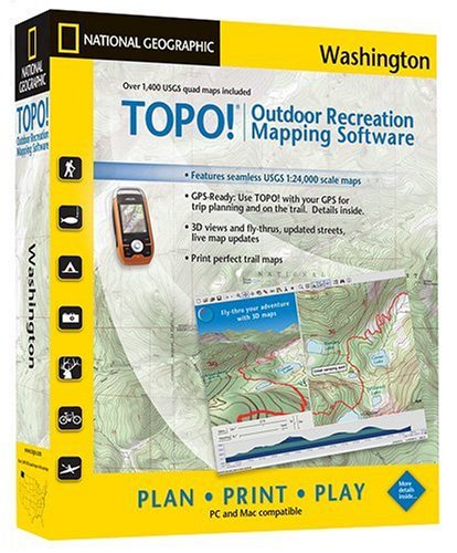 TOPO! harnesses the power of authentic USGS topographic maps in an intuitive software product that recreation enthusiasts and professionals use to customize and print photo-quality topographic maps. TOPO! includes five levels of seamless mapping, including USA maps from the National Geographic World Atlas, USGS 1:100,000 scale mapping - perfect for back road navigation - and USGS 1:24,000 scale maps, also known as 7.5 minute quads. Users can custom-center the map in any location, add their routes, trails and notes. In addition, users can transfer waypoints and routes between TOPO! and their GPS units. TOPO! includes added content and features not on USGS maps: updated streets and roads, shaded relief, 3D views and fly-throughs and elevation profiles. Users can download map and software updates, and can print waterproof maps on their inkjet printers with Adventure Paper. The USA Placefinder locates more than a million places and natural features.
